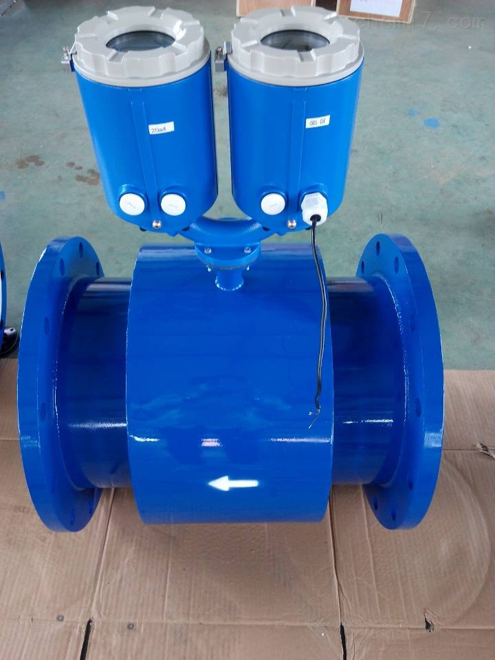 智能雙供電電磁流量計測量系統由傳感器和轉換器兩部分組成。組裝方式為一體式一體式安裝是把傳感器和轉換器通過內部連線接在一起,組成一個整體,直接在面板上顯示各種流量參數,它不需要外部供電。智能雙供電電磁流量計即自帶鋰電磁給儀表供電,也可外接電源供電,雙向選擇更方便了現場所需使用環境。智能磁流量計傳感器主要由測量導管、測量電極、勵磁線圈、鐵芯、磁軛和殼體等組成。轉換器即為二次儀表。主要功能是:將流量信號放大處理、單片機內部運算、瞬時流量及累計值的顯示,可以輸出脈沖信號,也可以采用GPRS進行無線傳送,進行集中控制。