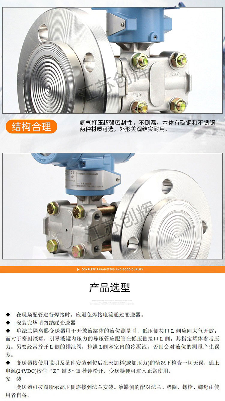 單法蘭差壓變送器采用全密封焊接結(jié)構(gòu) 外形結(jié)構(gòu)多樣化、采用耐高溫電路板 傳感器抗干擾強(qiáng)、長期穩(wěn)定性好、防雷擊、防射頻干擾、高精度、高穩(wěn)定性、316不銹鋼隔離膜片結(jié)構(gòu)(或者鉭膜片)、多種量程選擇、用戶方便調(diào)試。