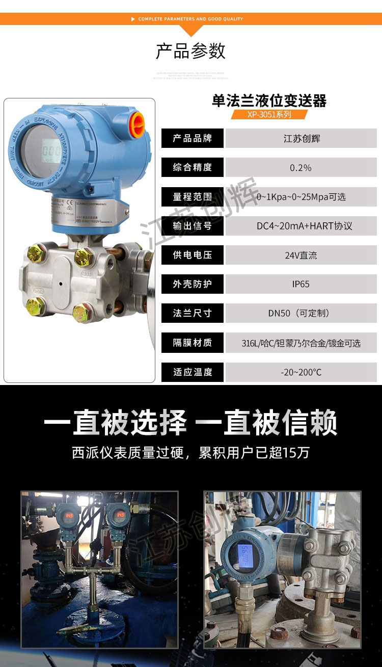 2、316膜片、HC、鈦膜片多種選擇,世界上***采用H合金護(hù)套的傳感器(**技術(shù)),幫助單法蘭液位變送器實現(xiàn)了優(yōu)良的冷、熱穩(wěn)定性