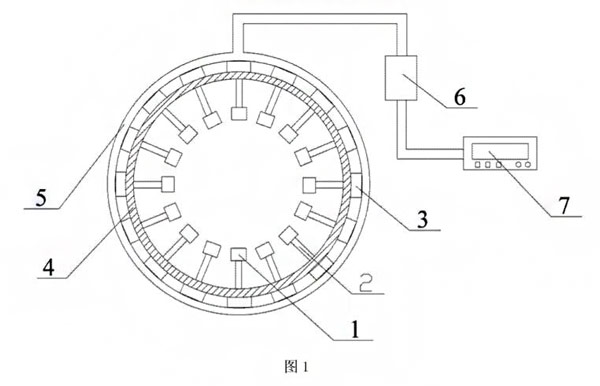 圖1是本新型多電極電磁流量計(jì)測量點(diǎn)截面結(jié)構(gòu)示意圖。